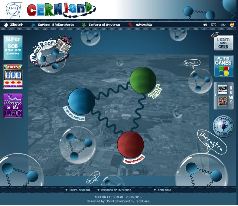 Creado por el CERN (La Organización Europea para la Investigación Nuclear), Cernland es un parque temático virtual que busca introducir a los niños en el mundo de la física a través de juegos educativos, recursos multimedia e información adaptada a su edad. Cernland está estructurada en tres secciones principales con juegos y recursos: i) explora el laboratorio, ii) explora el universo y iii) multimedia. En el aula puedes utilizarlo en la clase de Ciencias naturales, Física y Química tanto en los últimos años de primaria como en secundaria.