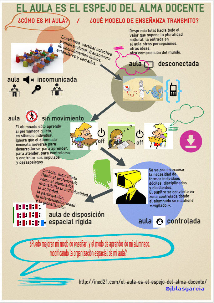 ¿Existe poca comunicación en tu aula?, ¿Hay poco «movimiento»?, ¿Está demasiado controlada?. Desde el portal INED21 describen algunas características de las aulas que podrían estar alejados de las expectativas propias de nuestros tiempos y claro nos facilitan algunas recomendaciones para abordar e intentar «dar un giro» hacia espacios de aprendizaje más interactivos, personalizados y enfocados en el desarrollo individual de los alumnos. A continuación les dejamos el enlace a este interesante artículo.