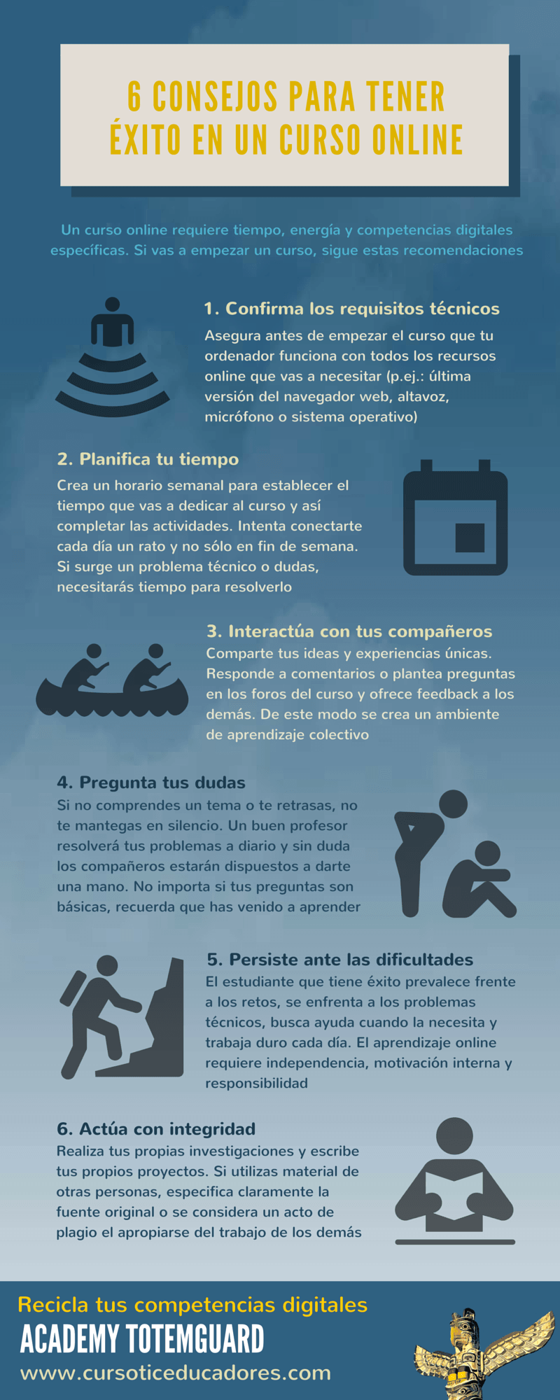 Compartimos una interesante infografía sobre «6 Claves para Aprovechar al Máximo un Curso Online»