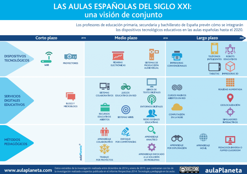 Compartimos una interesante infografía sobre «Aulas Españolas – Cómo podría Evolucionar la Pedagogía y Tecnología en el Siglo XXI»