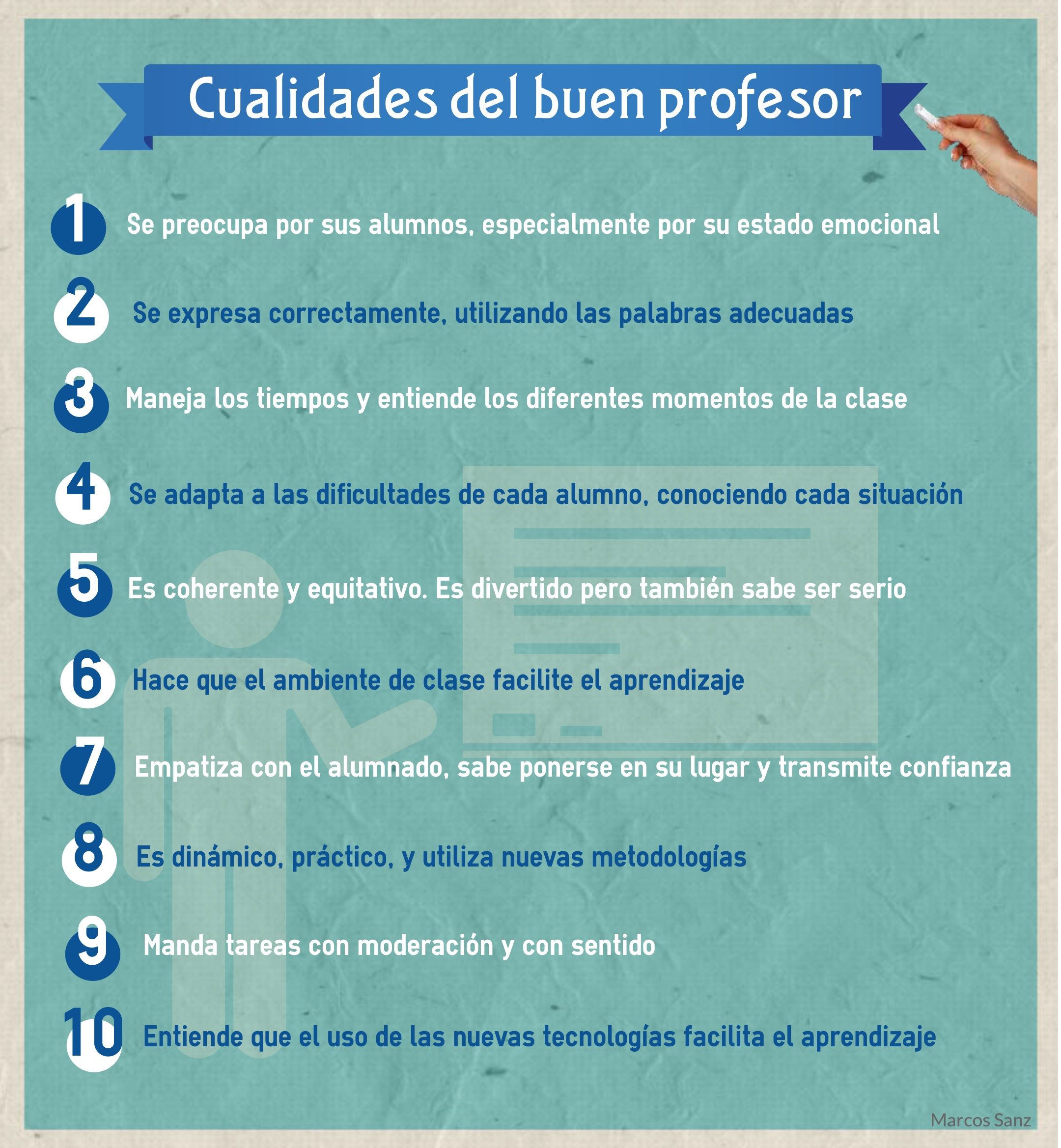 Compartimos una interesante infografía sobre «10 Cualidades del Buen Profesor»