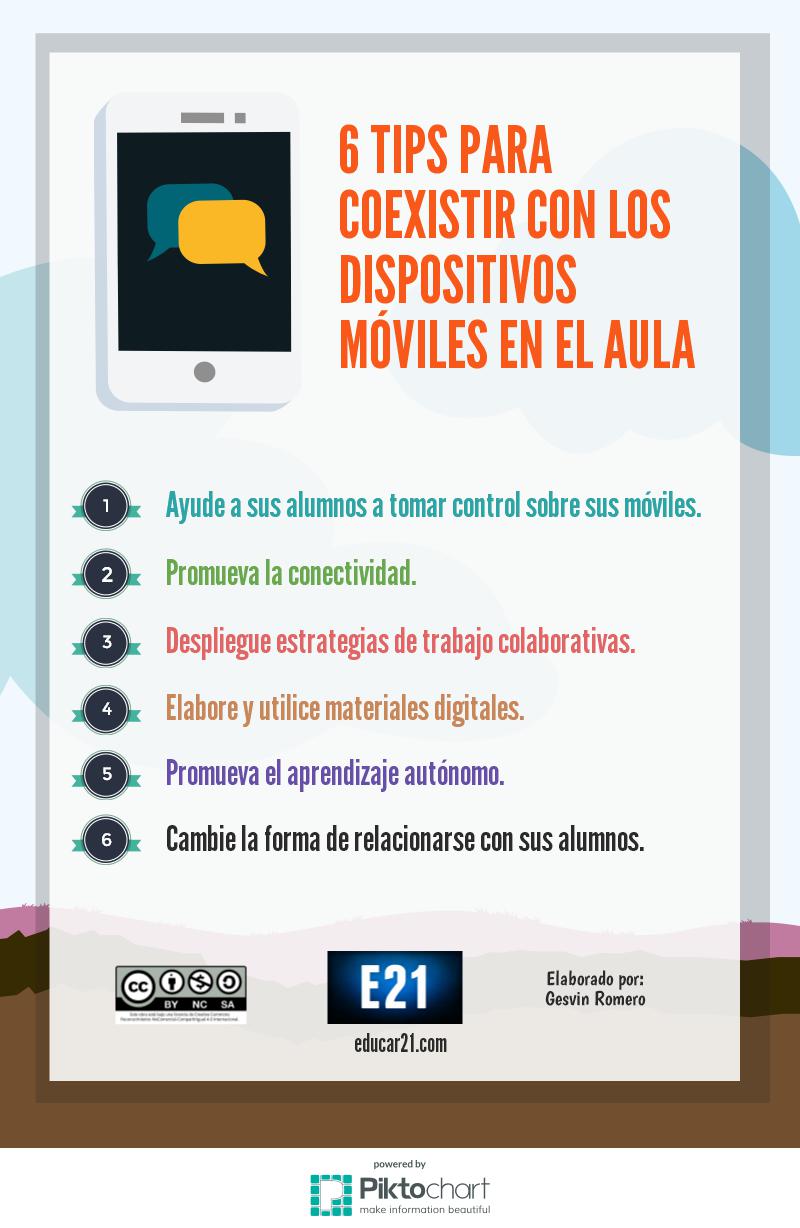 Compartimos una interesante infografía sobre «6 Tips para Coexistir con los Dispositivos Móviles en el Aula»