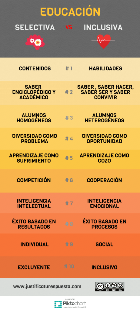 Compartimos una interesante infografía sobre «La Escuela Selectiva frente a la Inclusiva»