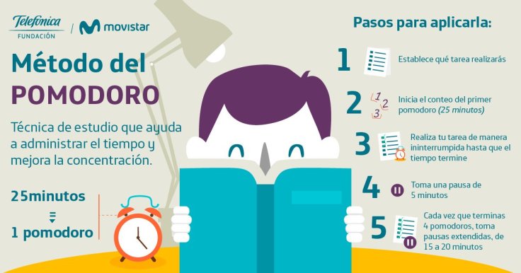 Compartimos una interesante infografía sobre «Método de Estudio Pomodoro para Mejorar la Organización y Concentración»