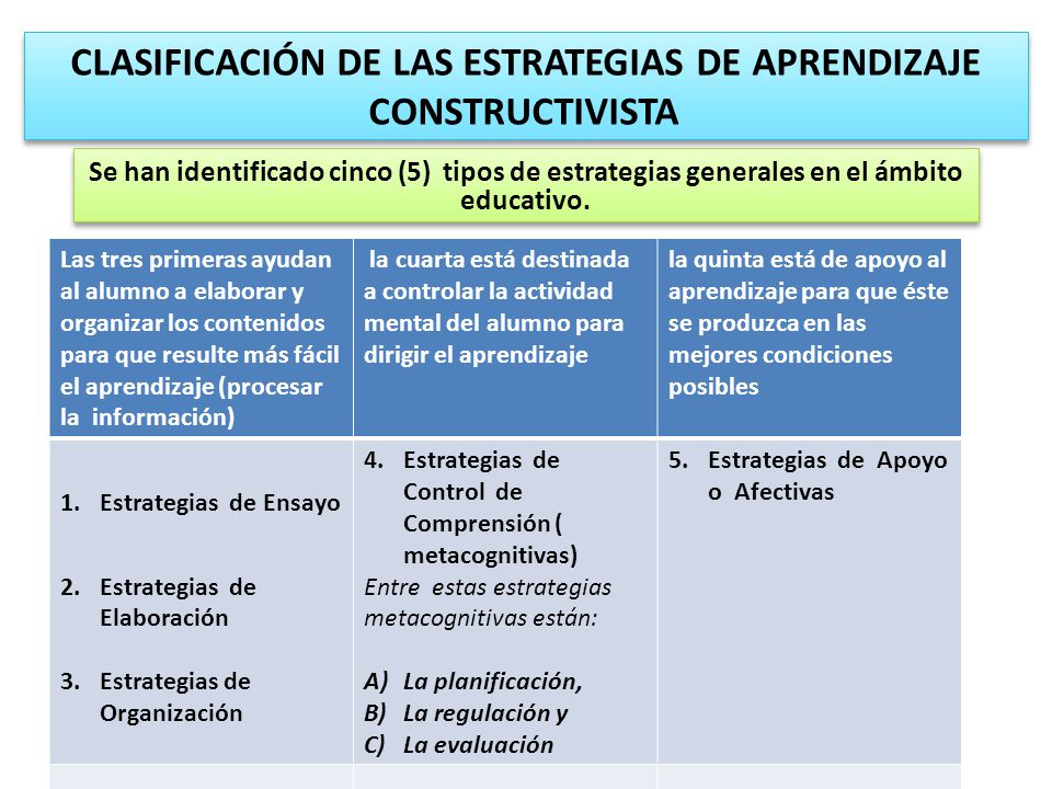 La v fuente de donde sacaste la clasificación de estrategias constructivistas?