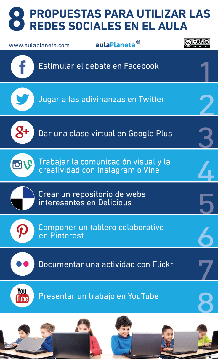 Compartimos una interesante infografía sobre «Redes Sociales – 8 Propuestas para su Uso en el Aula»