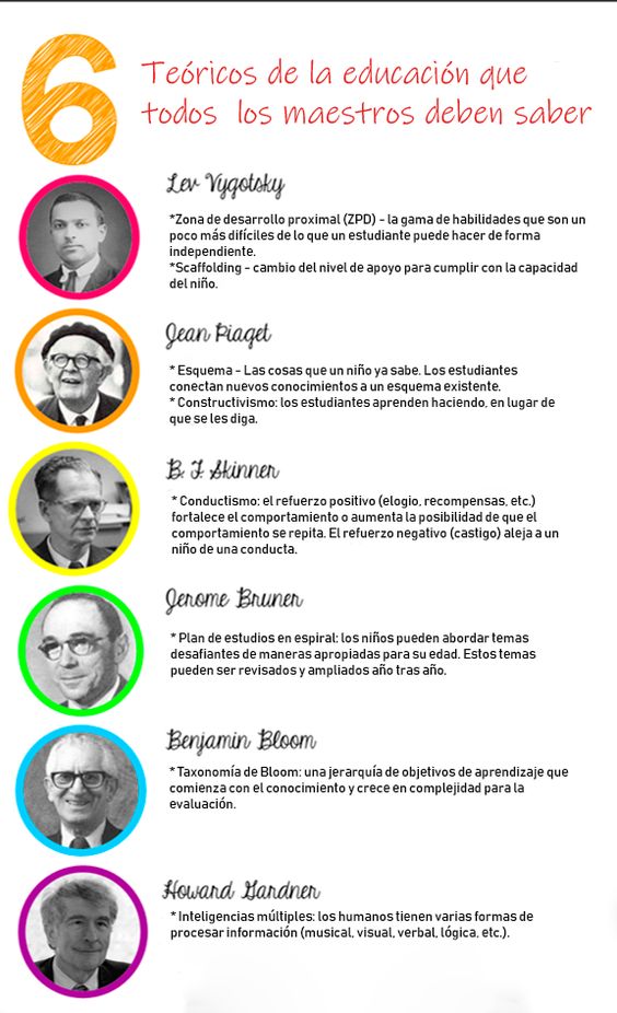 Compartimos una interesante infografía sobre «6 Teóricos del Aprendizaje que todo Maestro debe Conocer»