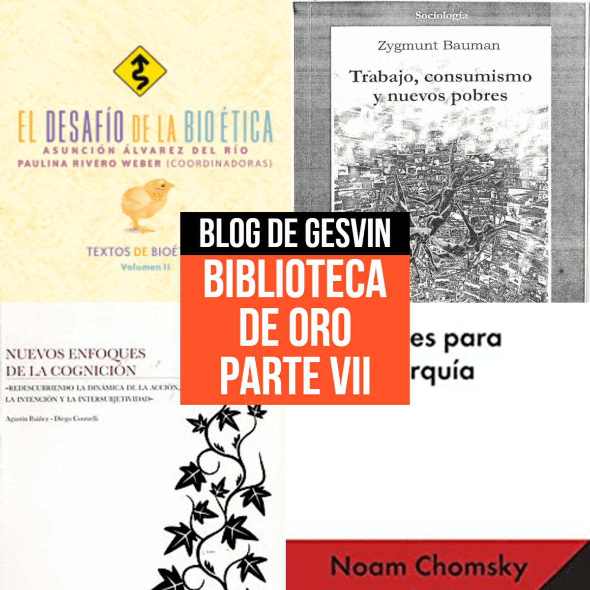 Hoy en nuestra Biblioteca de Oro – Parte 7, El Desafío de la Bioética de Asunción Álvarez del Río, Trabajo, Consumismo y Nuevos Pobres de Zygmunt Bauman, Nuevos Enfoques de la Cognición de A. Ibañez y Razones para la Anarquía de Noam Chomsky.
