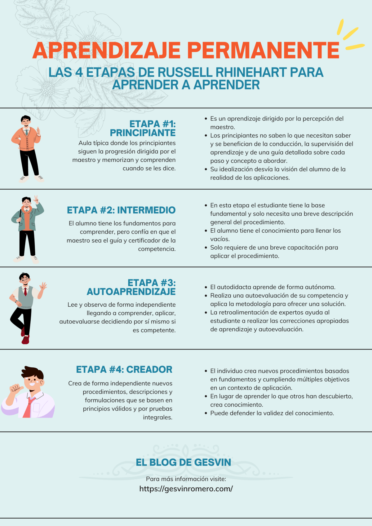 Aprendizaje Permanente – Las 4 Etapas para Aprender a Aprender | Infografía