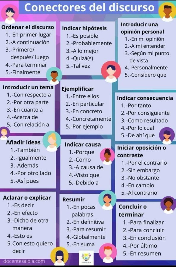 ¡Hola amigos! hoy compartimos una interesante infografía sobre “Conectores del Discurso«