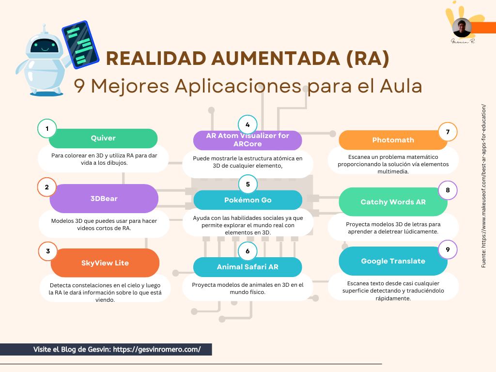 ¡Hola amigos! hoy compartimos una interesante infografía sobre “Realidad Aumentada – Las 9 Mejores Aplicaciones Móviles para el Aula«