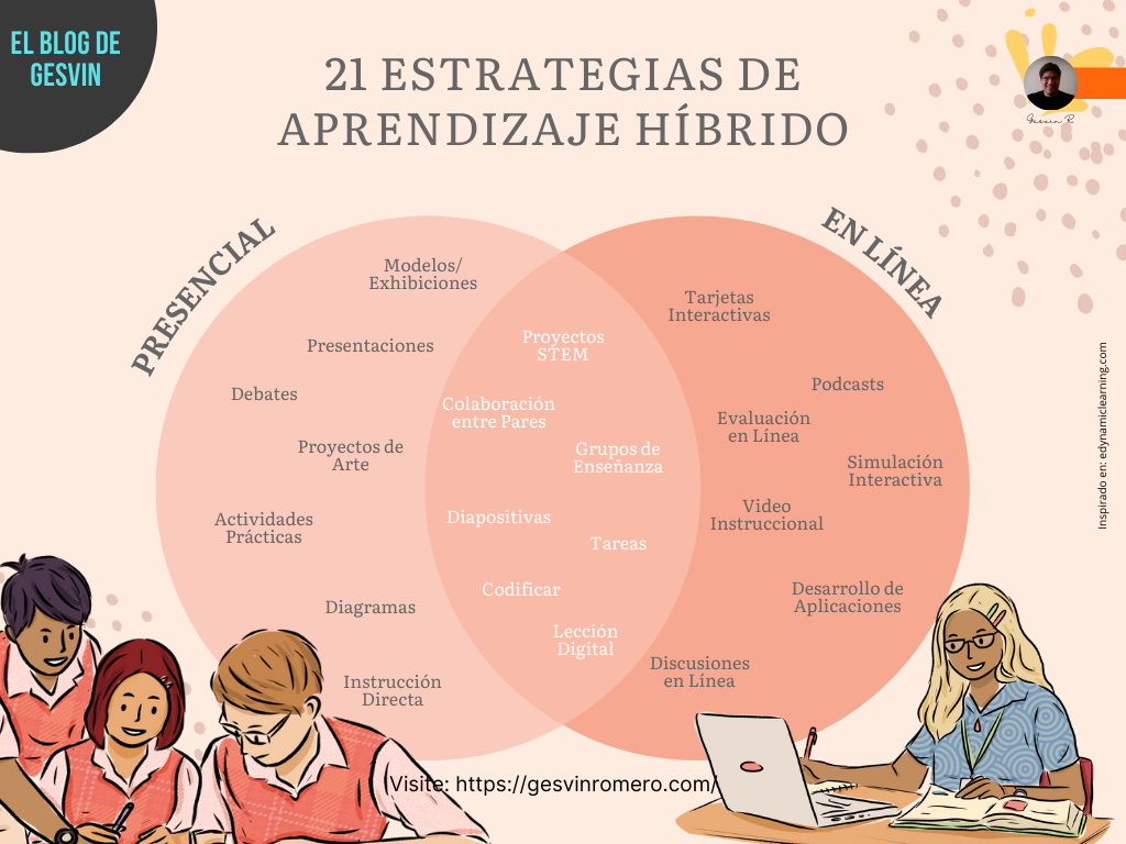 ¡Hola amigos! hoy compartimos una interesante infografía sobre “21 Estrategias de Aprendizaje Híbrido o Blended Learning«