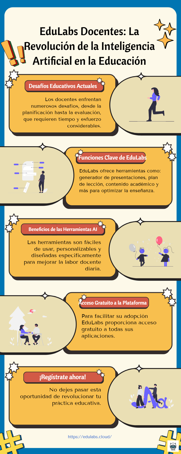 En el mundo educativo actual, los docentes enfrentan numerosos desafíos diarios. Desde la planificación de clases hasta la evaluación de estudiantes, cada tarea requiere tiempo y esfuerzo. Por eso, presentamos EduLabs Docentes: una innovadora suite de aplicaciones basadas en inteligencia artificial, diseñada especialmente para educadores de habla hispana.