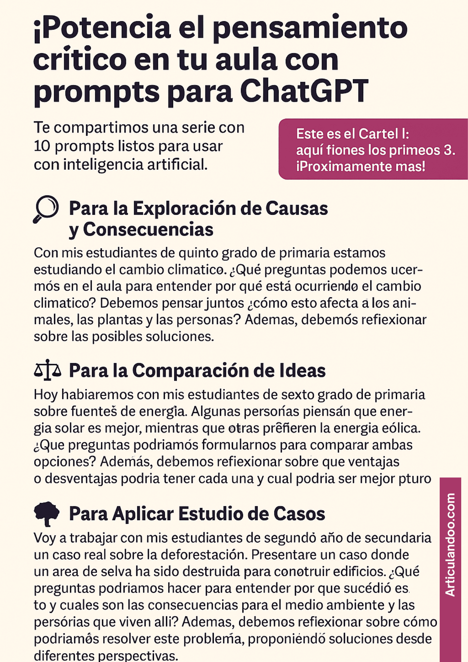 Visto en: Fomentar Pensamiento Crítico Escolar – 5 Efectivas Estrategias para el Aula [Incluye Prompts].