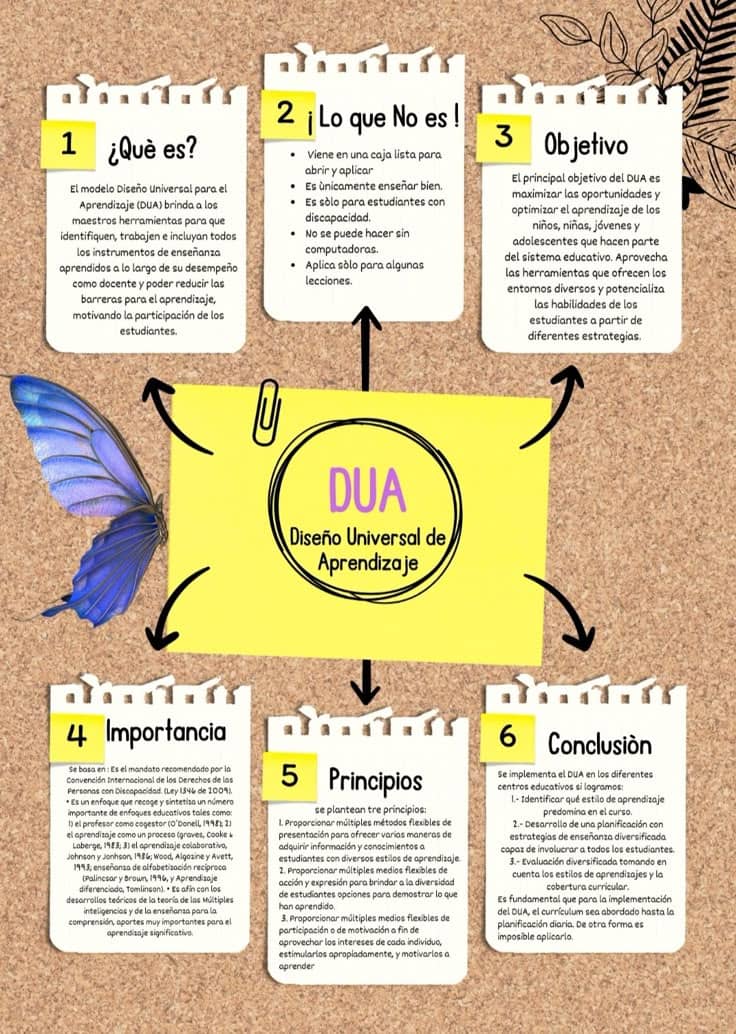 - Definición clara del DUA como herramienta para maestros que buscan reducir barreras y motivar la participación estudiantil.