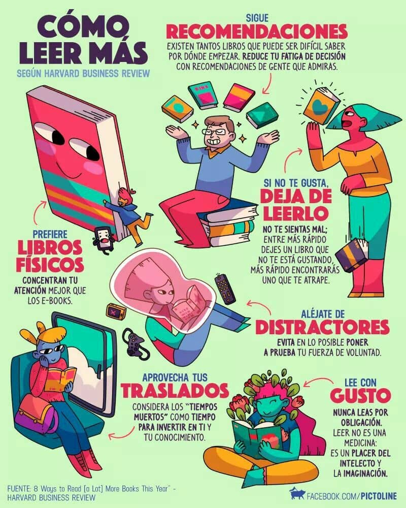 Esta infografía destila estrategias de lectura sumamente prácticas que se centran en la psicología del lector moderno: la lucha contra la distracción y la fatiga de decisión. La recomendación de abandonar libros sin remordimiento es liberadora y crucial para mantener el impulso lector. Aunque la primacía del libro físico puede ser debatible en términos de accesibilidad, subraya una verdad ineludible sobre la concentración en el entorno digital. En conjunto, son pautas excelentes para transformar la lectura de una tarea a un hábito placentero y productivo.