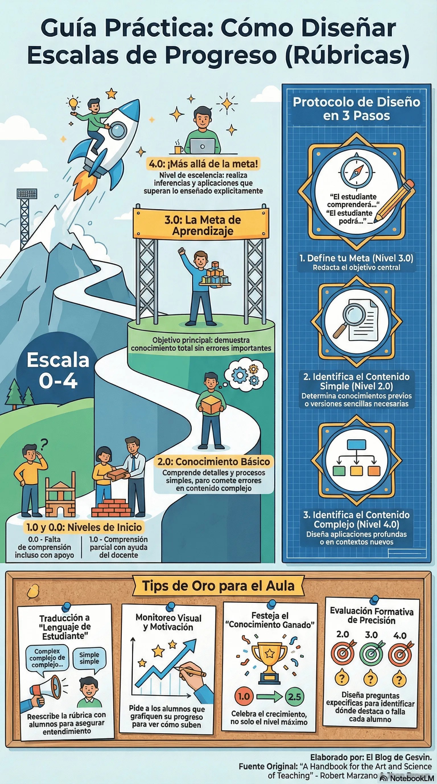 ¡Hola amigos! hoy compartimos un interesante contenido sobre «Cómo Diseñar Escalas de Progreso (Rúbricas) – Guía Práctica con Protocolo de 3 Pasos»