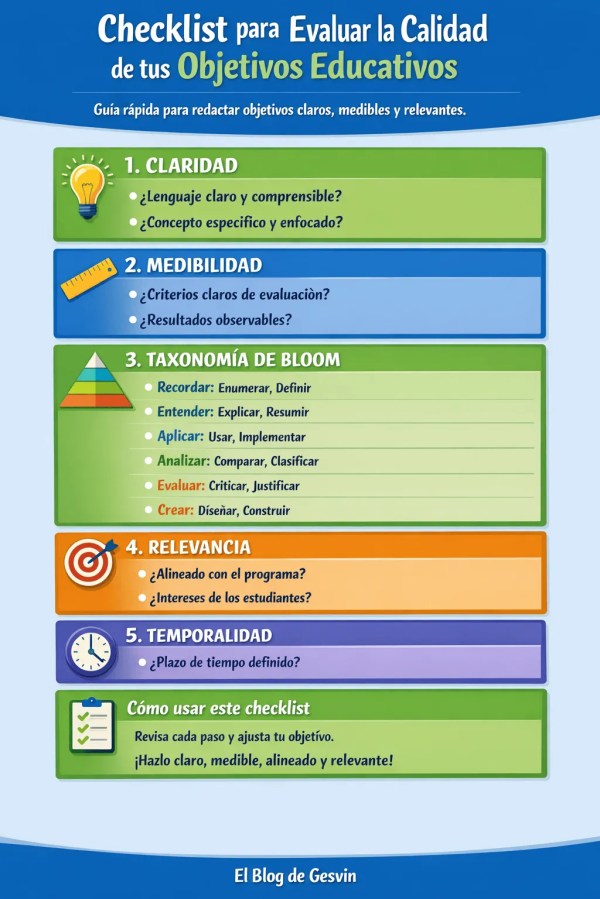 Checklist para Evaluar la Calidad de tus Objetivos Educativos – Guía Práctica para Docentes