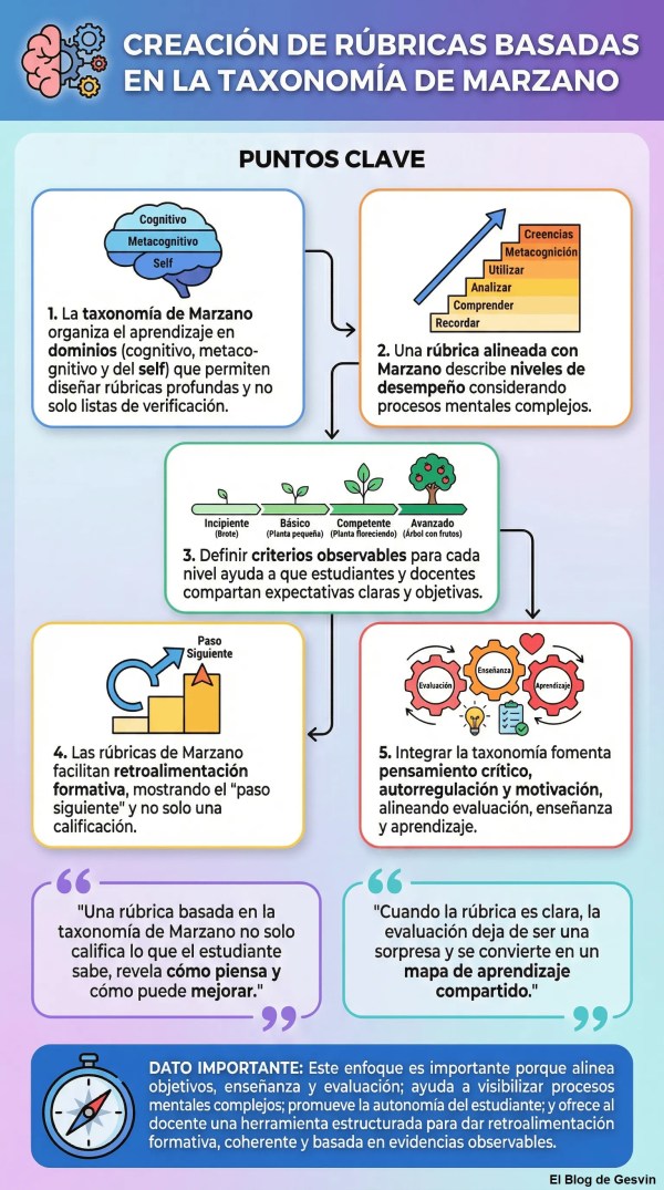 Aprende cómo diseñar rúbricas claras, justas y profundas usando la taxonomía de Marzano. Aprende a evaluar procesos cognitivos y metacognitivos, ofrecer mejor retroalimentación y transformar la calificación en una verdadera oportunidad de aprendizaje.