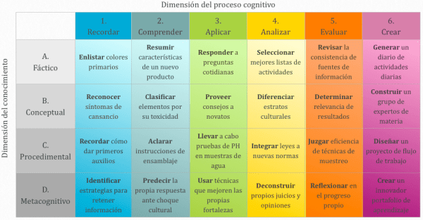 Taxonomía de Bloom – Dimensión del Conocimiento y del Proceso Cognitivo | Infografía