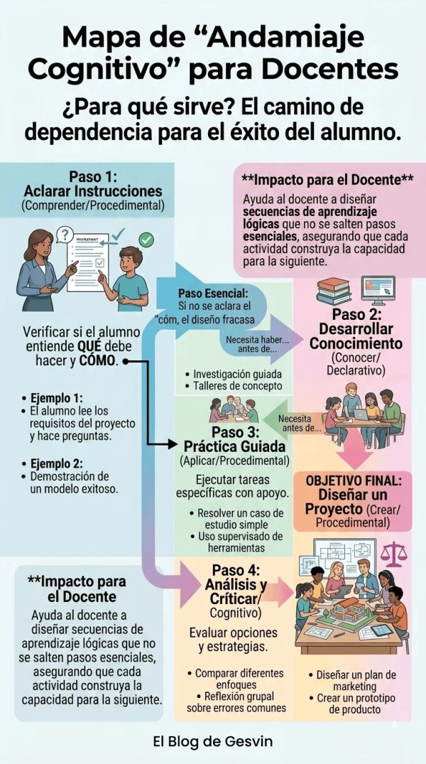 🎯 Impulsa tu práctica docente con el mapa definitivo de Andamiaje Cognitivo: 4 pasos esenciales para diseñar secuencias de aprendizaje lógicas que garantizan el éxito estudiantil. ¡Descubre cómo evitar los saltos que frustran el aprendizaje! 📚✨