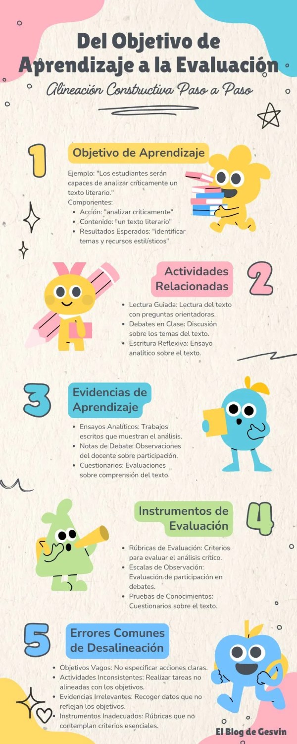 šÆ ĀæTe gustarĆa alinear perfectamente tus objetivos de aprendizaje con la evaluación en 5 pasos prĆ”cticos? Este visual incluye componentes esenciales, actividades coherentes, evidencias vĆ”lidas y errores comunes a evitar. Ā”Transforma tu planificación didĆ”ctica hoy! āØ