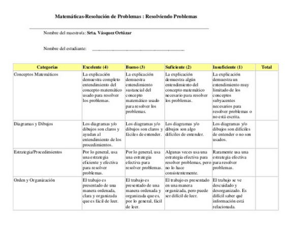 Rúbrica de Evaluación para la Resolución de Problemas Matemáticos | Presentación